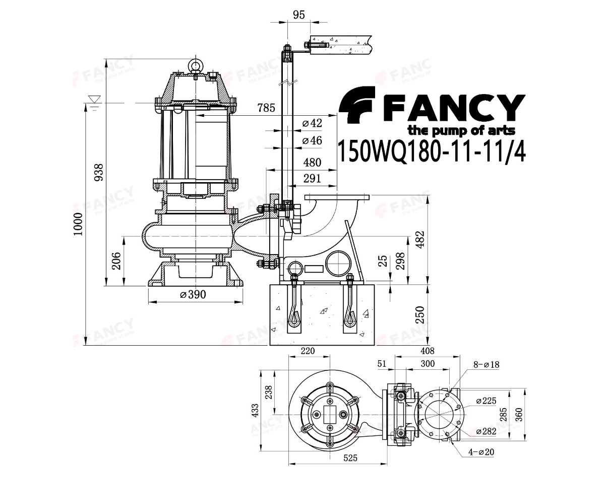 Промышленный погружной канализационный насос FANCY серии WQ используется для отвода канализационных, сточных, грунтовых, поверхностных и дренажных вод. Насос не предназначен для перекачки длинно волокнистых включений (тряпки, веревки). Стандартное исполнение насоса 3*380В, без поплавкового выключателя. Для полноценной работы насоса в автоматическом режиме рекомендуется подключение строго через защитную автоматику: шкаф управления или пульт управления насосами! Возможно исполнение насоса 1*230В со встроенным поплавковым выключателем.