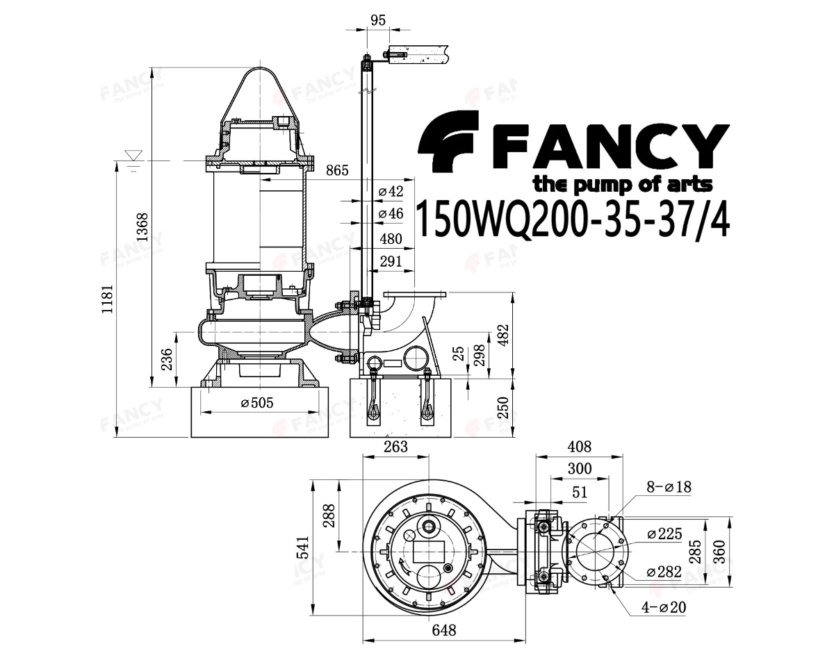 Промышленный погружной канализационный насос FANCY серии WQ используется для отвода канализационных, сточных, грунтовых, поверхностных и дренажных вод. Насос не предназначен для перекачки длинно волокнистых включений (тряпки, веревки). Стандартное исполнение насоса 3*380В, без поплавкового выключателя. Для полноценной работы насоса в автоматическом режиме рекомендуется подключение строго через защитную автоматику: шкаф управления или пульт управления насосами! Возможно исполнение насоса 1*230В со встроенным поплавковым выключателем.