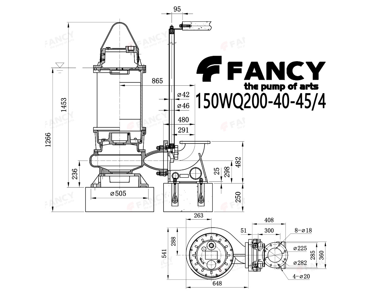 Промышленный погружной канализационный насос FANCY серии WQ используется для отвода канализационных, сточных, грунтовых, поверхностных и дренажных вод. Насос не предназначен для перекачки длинно волокнистых включений (тряпки, веревки). Стандартное исполнение насоса 3*380В, без поплавкового выключателя. Для полноценной работы насоса в автоматическом режиме рекомендуется подключение строго через защитную автоматику: шкаф управления или пульт управления насосами! Возможно исполнение насоса 1*230В со встроенным поплавковым выключателем.