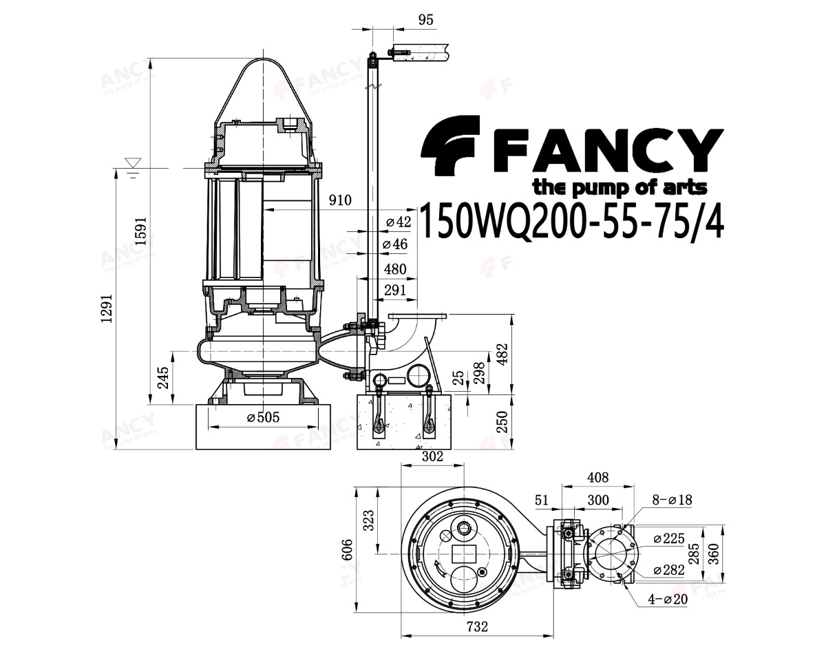 Промышленный погружной канализационный насос FANCY серии WQ используется для отвода канализационных, сточных, грунтовых, поверхностных и дренажных вод. Насос не предназначен для перекачки длинно волокнистых включений (тряпки, веревки). Стандартное исполнение насоса 3*380В, без поплавкового выключателя. Для полноценной работы насоса в автоматическом режиме рекомендуется подключение строго через защитную автоматику: шкаф управления или пульт управления насосами! Возможно исполнение насоса 1*230В со встроенным поплавковым выключателем.