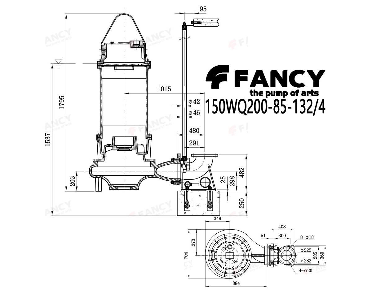 Промышленный погружной канализационный насос FANCY серии WQ используется для отвода канализационных, сточных, грунтовых, поверхностных и дренажных вод. Насос не предназначен для перекачки длинно волокнистых включений (тряпки, веревки). Стандартное исполнение насоса 3*380В, без поплавкового выключателя. Для полноценной работы насоса в автоматическом режиме рекомендуется подключение строго через защитную автоматику: шкаф управления или пульт управления насосами! Возможно исполнение насоса 1*230В со встроенным поплавковым выключателем.