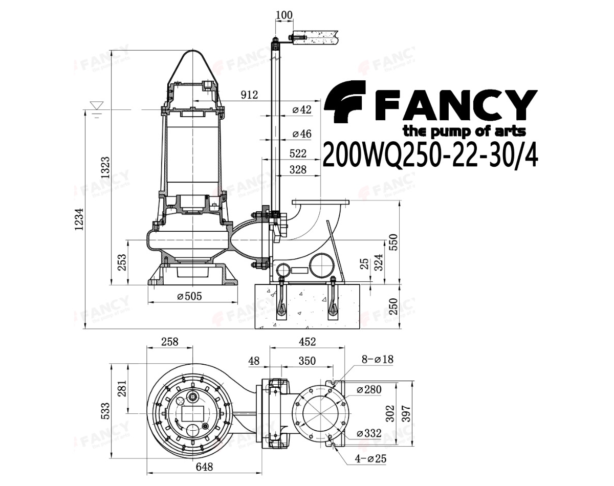 Промышленный погружной канализационный насос FANCY серии WQ используется для отвода канализационных, сточных, грунтовых, поверхностных и дренажных вод. Насос не предназначен для перекачки длинно волокнистых включений (тряпки, веревки). Стандартное исполнение насоса 3*380В, без поплавкового выключателя. Для полноценной работы насоса в автоматическом режиме рекомендуется подключение строго через защитную автоматику: шкаф управления или пульт управления насосами! Возможно исполнение насоса 1*230В со встроенным поплавковым выключателем.