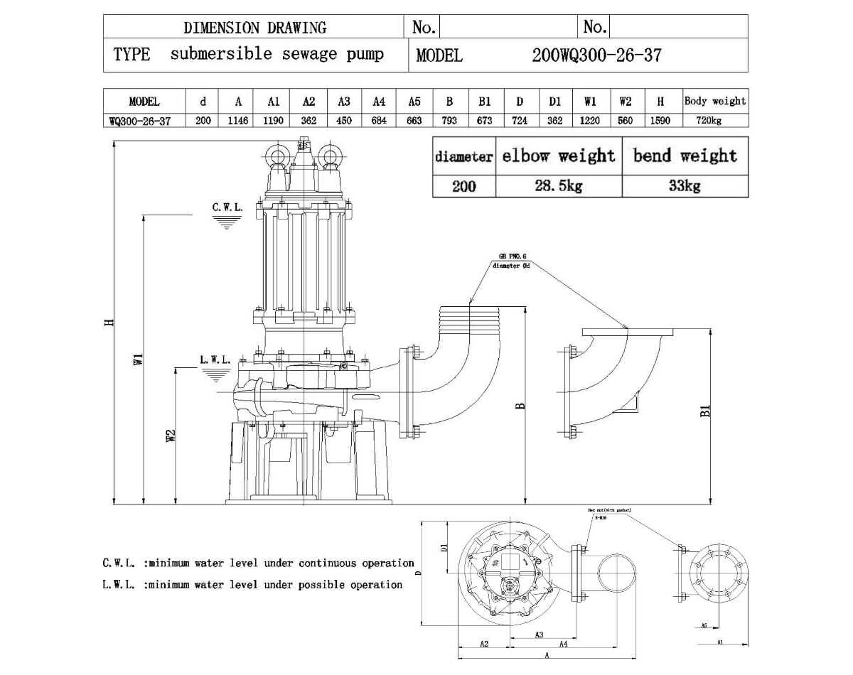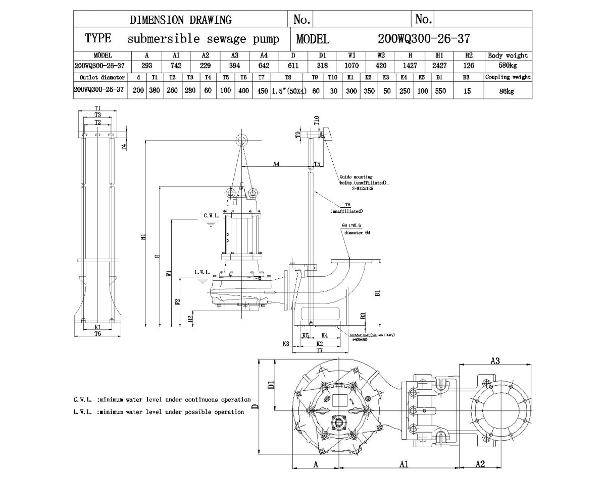 Канализационный насос 200WQ300-26-37