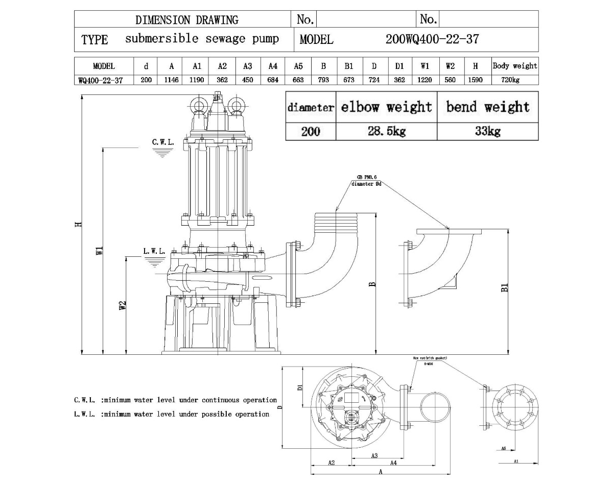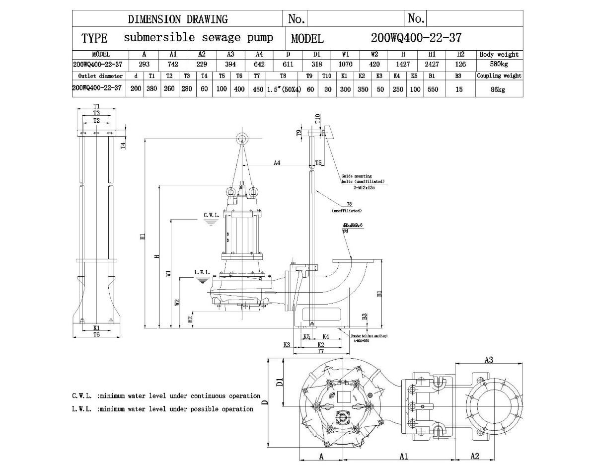 Канализационный насос 200WQ400-22-37