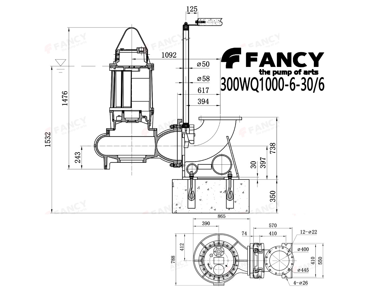 Промышленный погружной канализационный насос FANCY серии WQ используется для отвода канализационных, сточных, грунтовых, поверхностных и дренажных вод. Насос не предназначен для перекачки длинно волокнистых включений (тряпки, веревки). Стандартное исполнение насоса 3*380В, без поплавкового выключателя. Для полноценной работы насоса в автоматическом режиме рекомендуется подключение строго через защитную автоматику: шкаф управления или пульт управления насосами! Возможно исполнение насоса 1*230В со встроенным поплавковым выключателем.