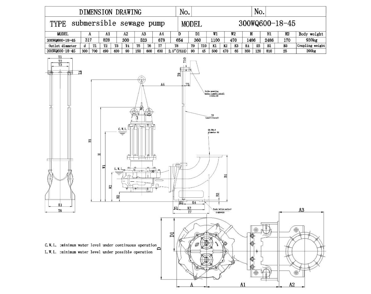 Канализационный насос 300WQ600-18-45