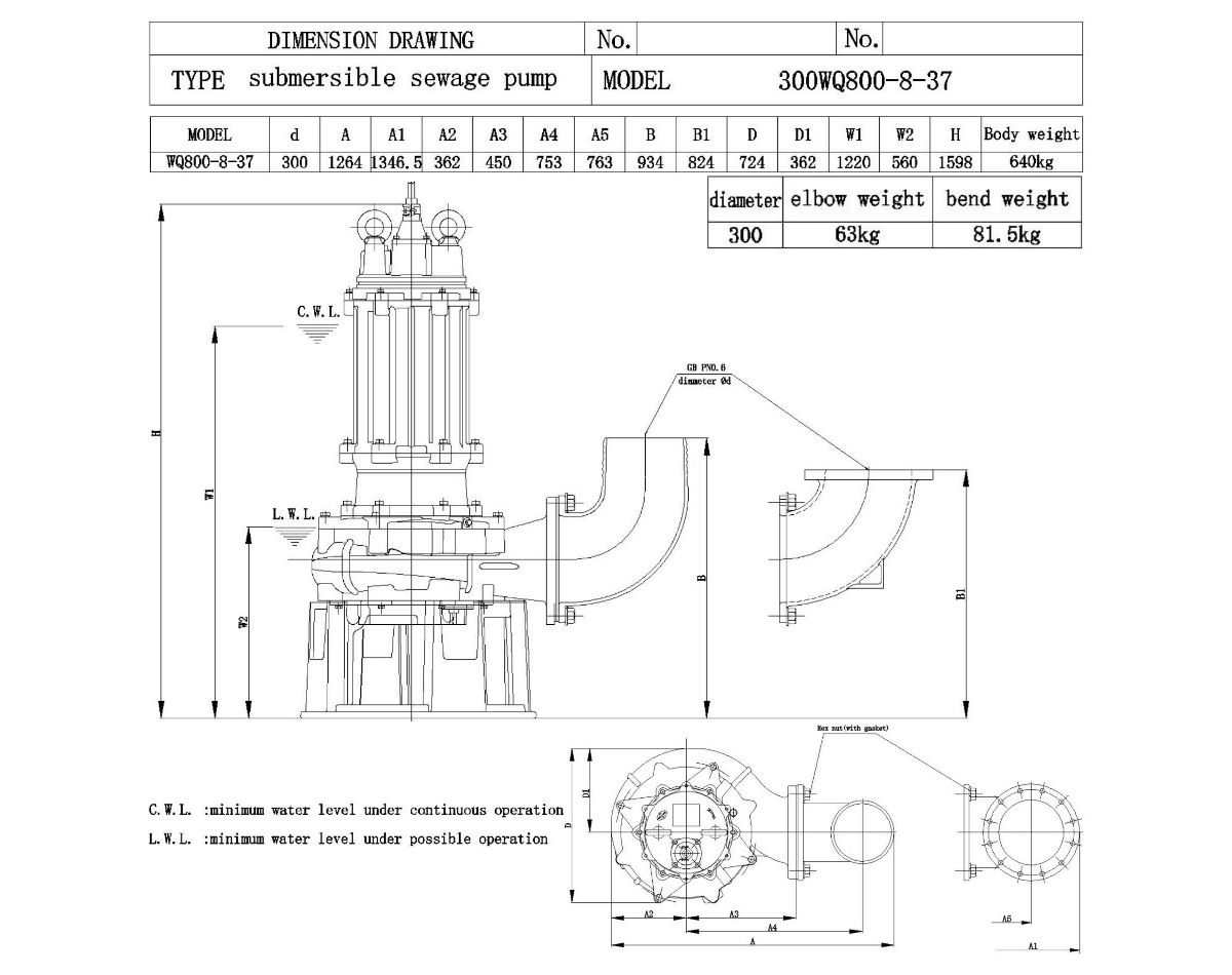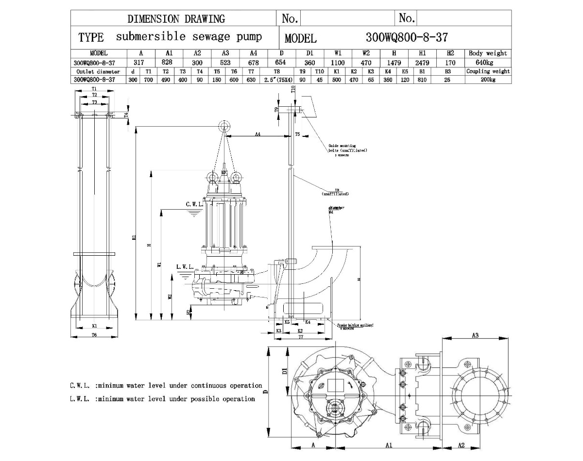 Канализационный насос 300WQ800-8-37