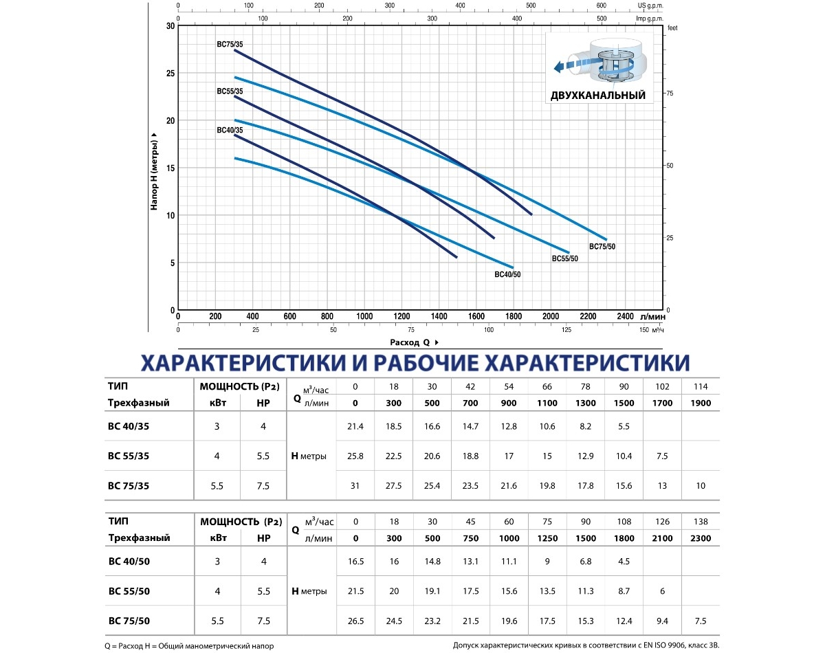 | Тип рабочего колеса | Закрытое двухканальное |