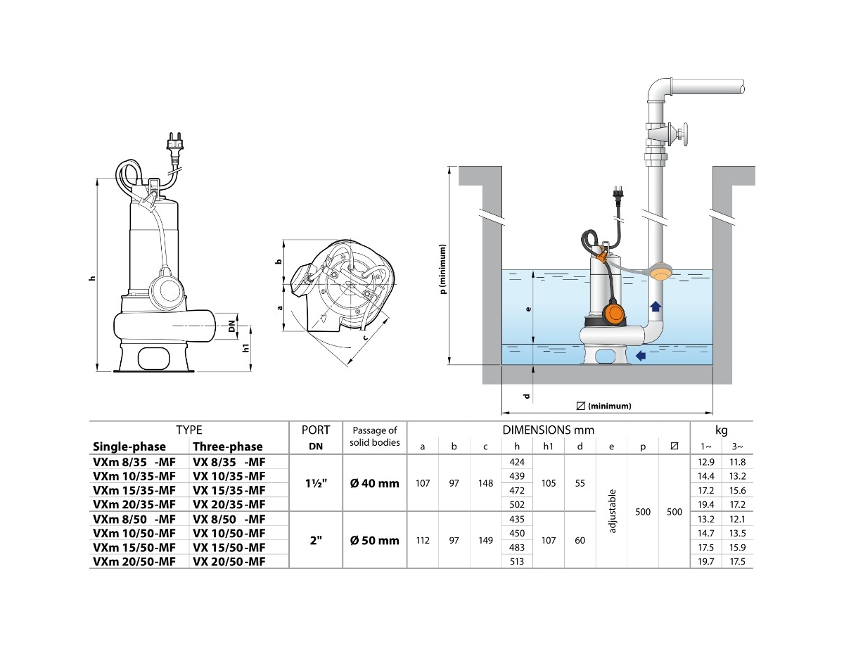 Погружные электронасосы из нержавеющей стали VX-MF рекомендуются для дренажа сточных вод в бытовом секторе, коммунальном хозяйстве и промышленности, во всех случаях, когда в воде присутствуют взвешенные твердые частицы, к примеру, для дренажа воды в смеси с грязью, грунтовых и поверхностных вод. Они рекомендуются для отвода воды из затопленных подвальных помещений, подземных гаражей и автомоек, опорожнения отстойников хозяйственно-фекальной канализации и отвода нечистот. Эти насосы отличаются надежностью работы в автоматическом режиме при использовании в стационарном варианте.
