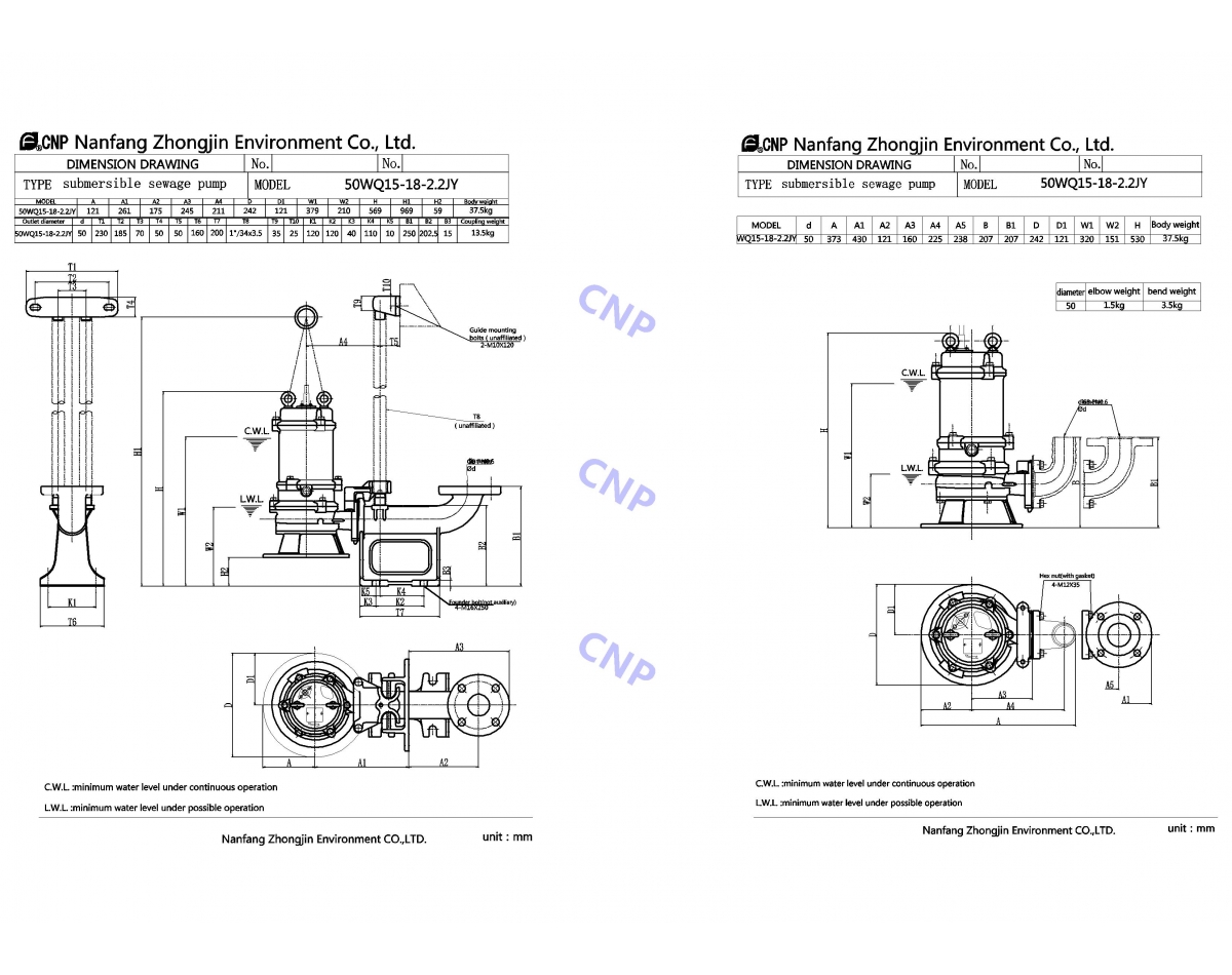 Промышленный канализационный насос CNP серии WQ это современный тип погружных насосов для откачки сточных вод, с надежной проверенной временем конструкцией насосной части и системой защит электродвигателя, делает этот насос одним из лучших в своем классе.