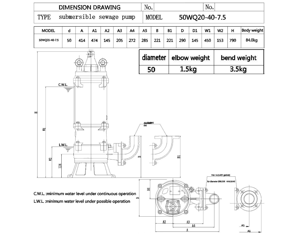 Канализационный насос 50WQ20-40-7.5