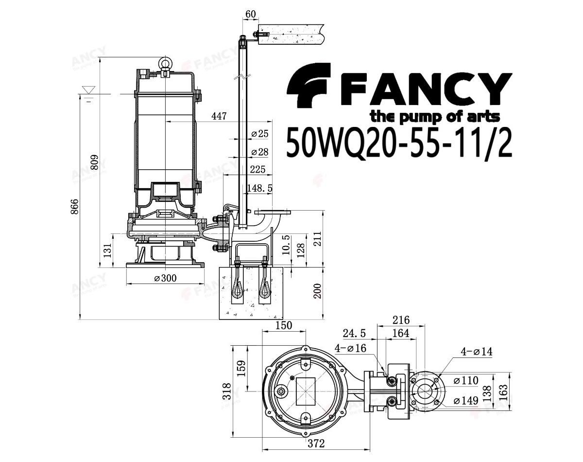 Промышленный погружной канализационный насос FANCY серии WQ используется для отвода канализационных, сточных, грунтовых, поверхностных и дренажных вод. Насос не предназначен для перекачки длинно волокнистых включений (тряпки, веревки). Стандартное исполнение насоса 3*380В, без поплавкового выключателя. Для полноценной работы насоса в автоматическом режиме рекомендуется подключение строго через защитную автоматику: шкаф управления или пульт управления насосами! Возможно исполнение насоса 1*230В со встроенным поплавковым выключателем.