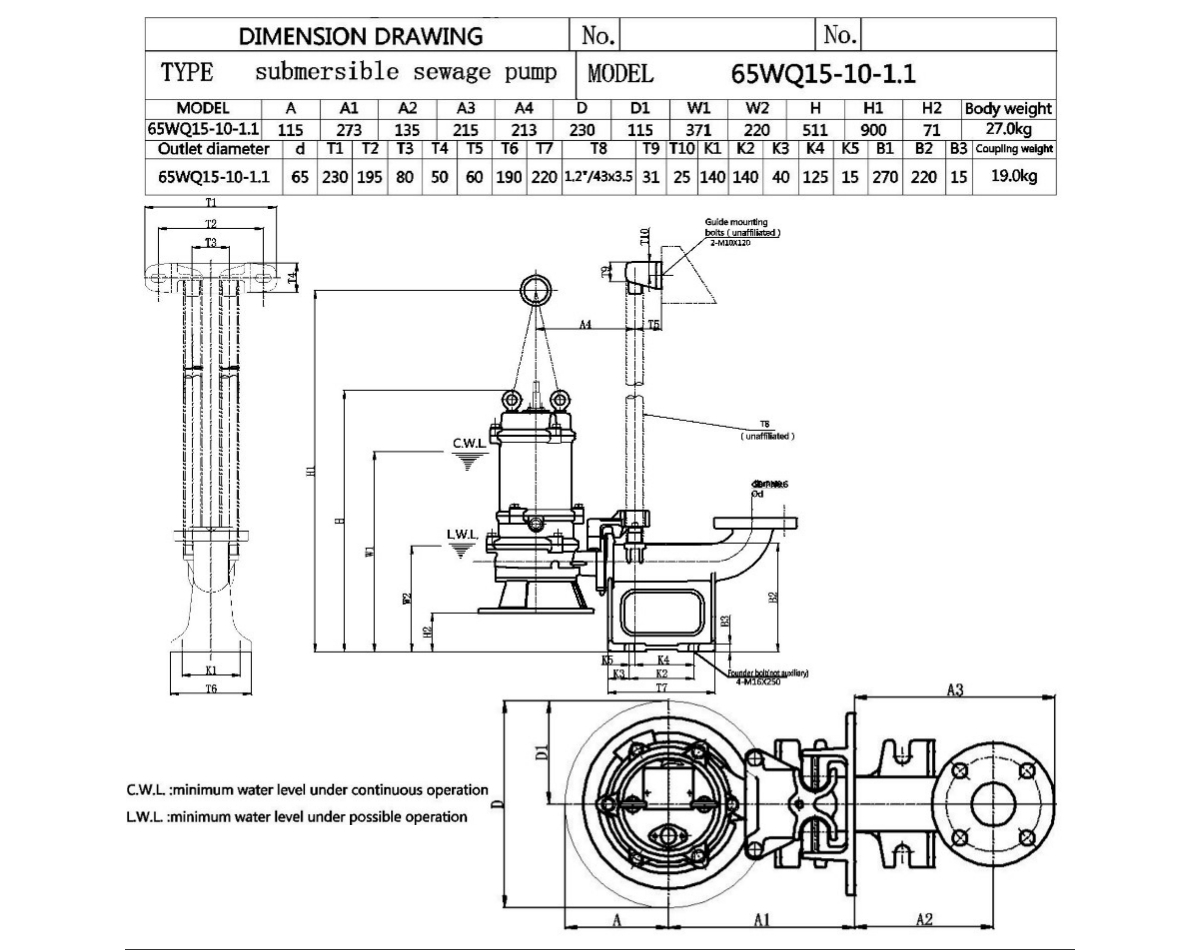 Промышленный канализационный насос CNP серии WQ это современный тип погружных насосов для откачки сточных вод, с надежной проверенной временем конструкцией насосной части и системой защит электродвигателя, делает этот насос одним из лучших в своем классе.