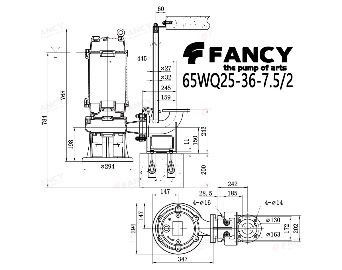 Канализационный НАСОС FANCY 65WQ25-36-7.5/2 |