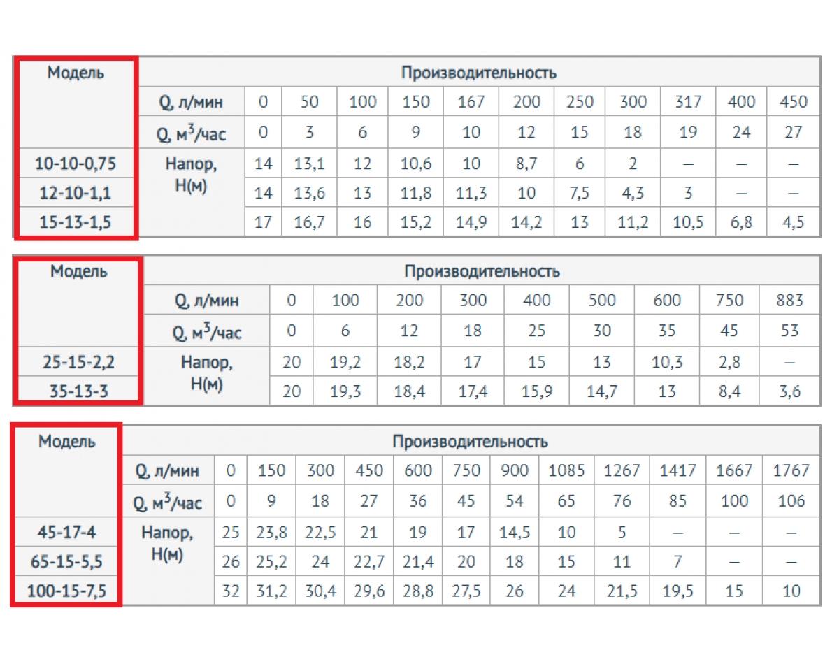 | Тип перекачиваемой жидкости | Вода |