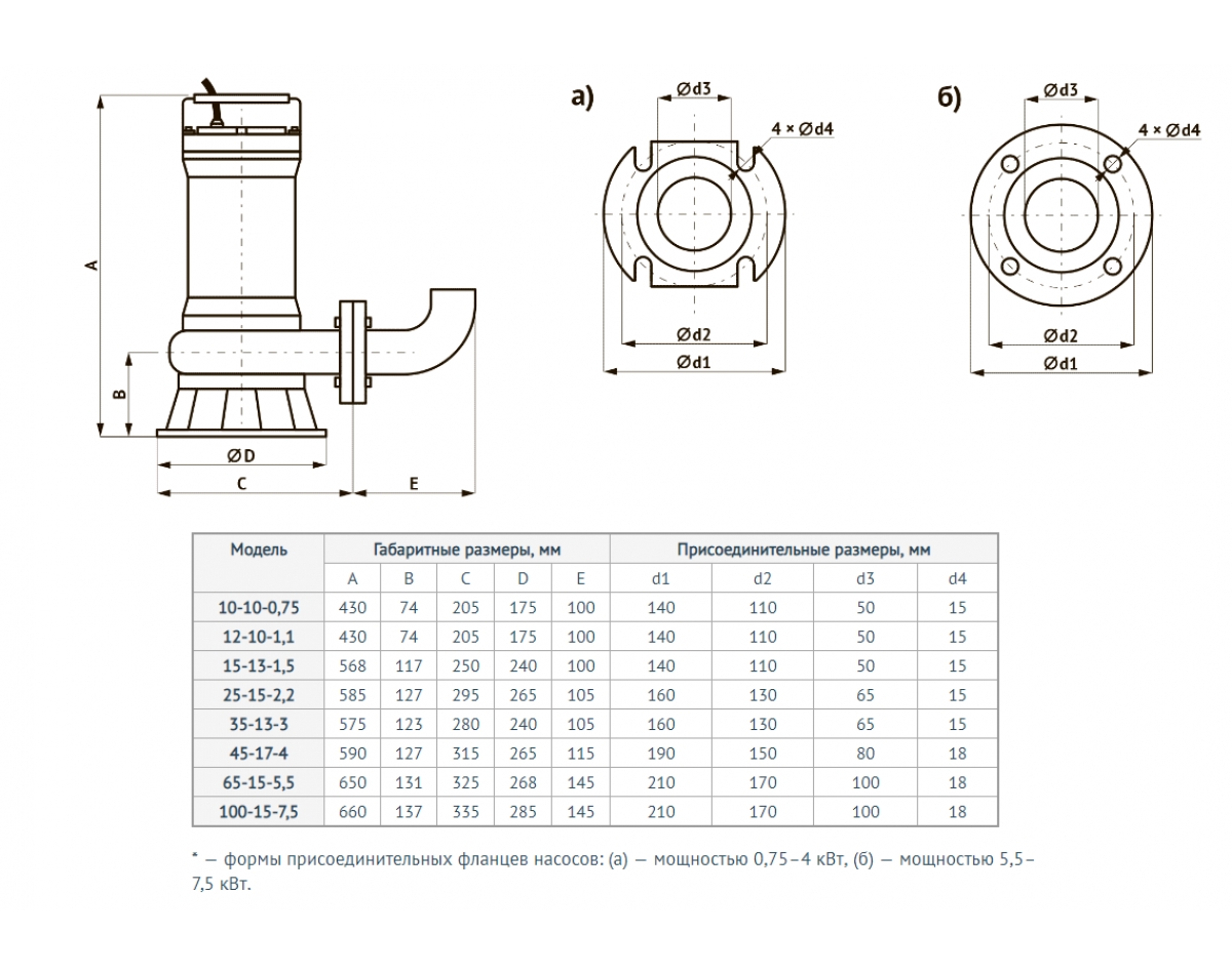 | Тип насоса | Канализационный насос |