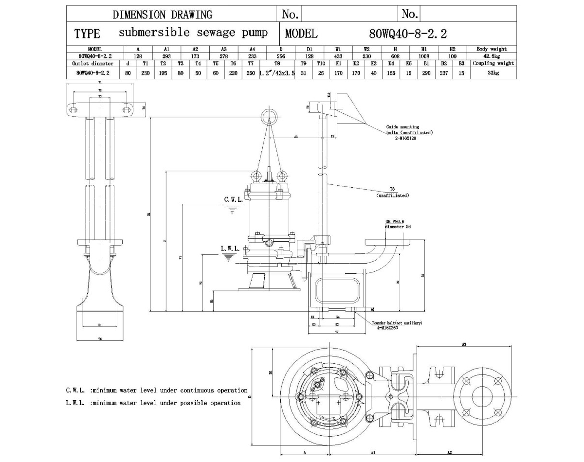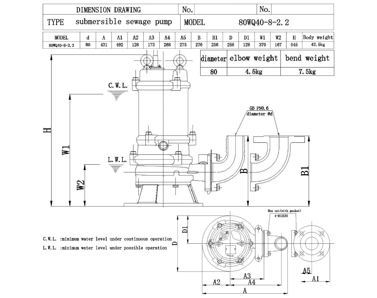 Канализационный насос 80WQ40-8-2.2