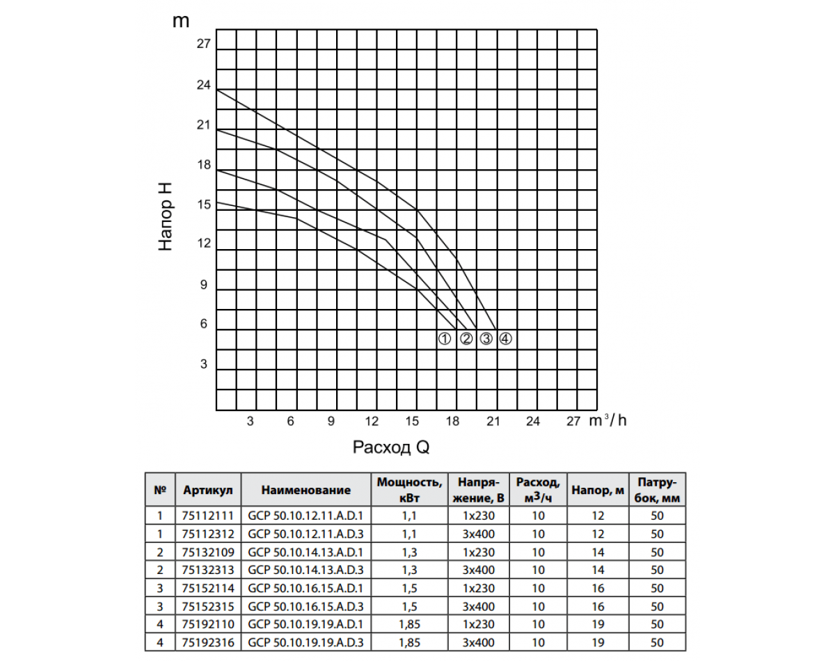 Насос GCP 50.10.19.19.A.D (DN 50, 1.85 кВт, 1*230 В) с поплавковым выключателем