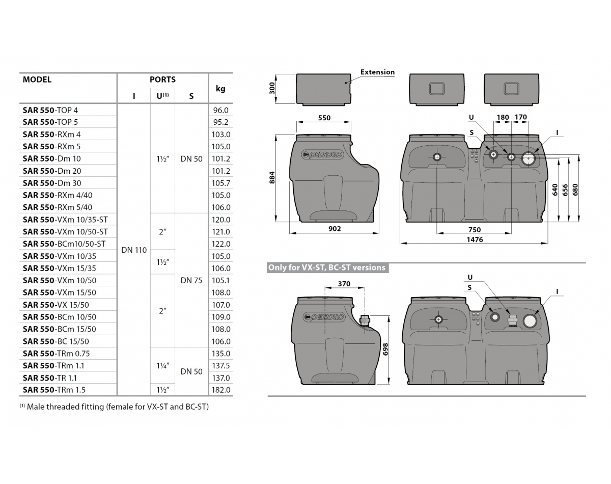 Канализационная установка PEDROLLO SAR 550-VXm 15/50