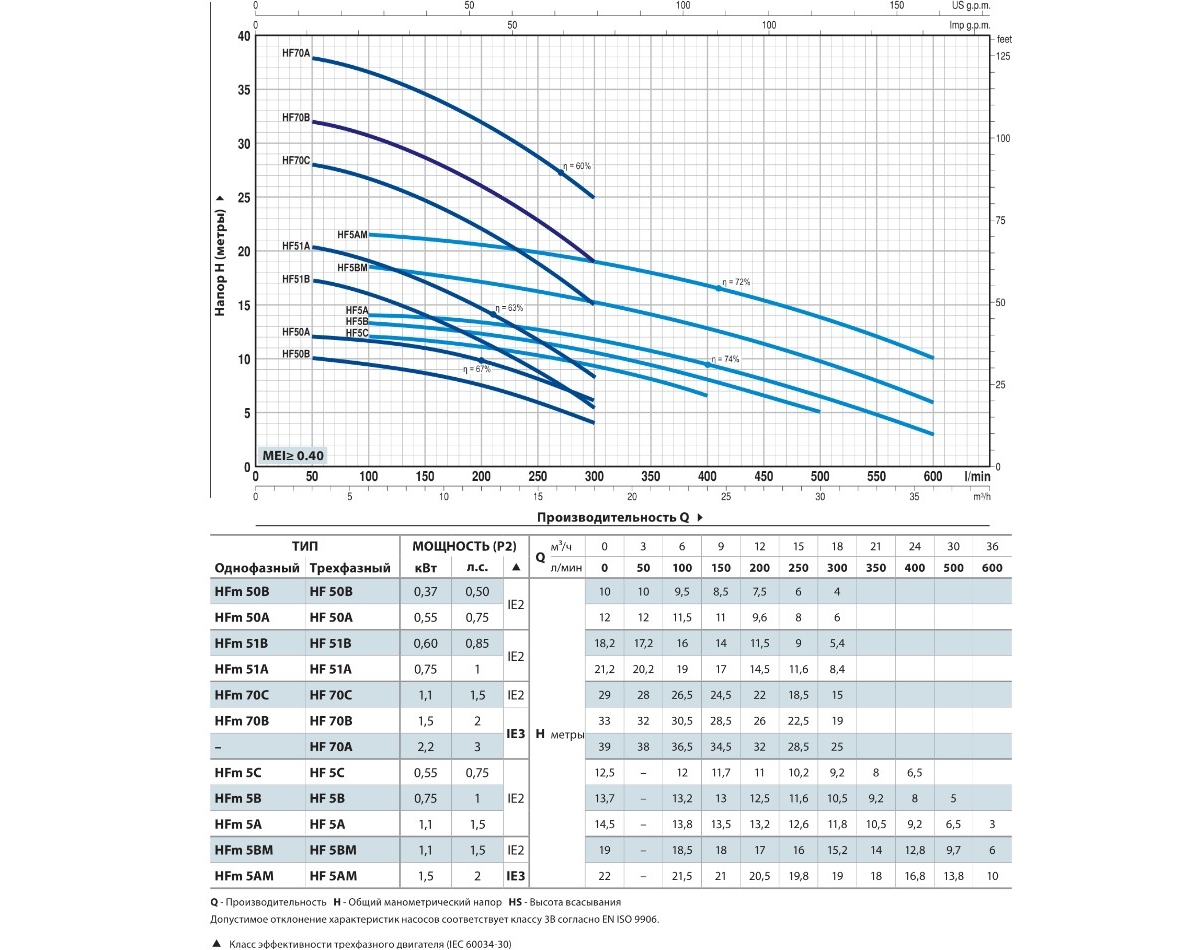| Глубина всасывания \ погружения (метров) | 7 |