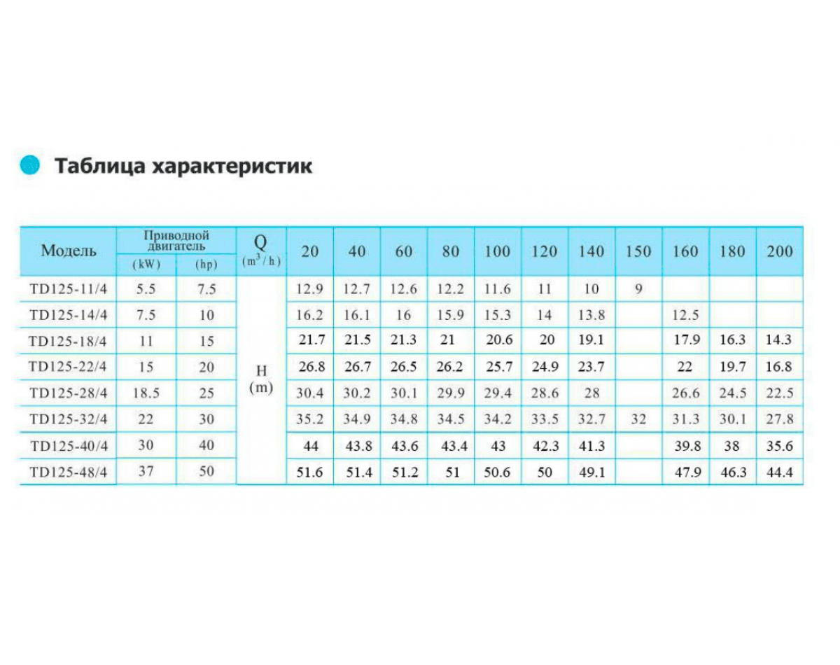 Каталог технических характеристик насосов TD |