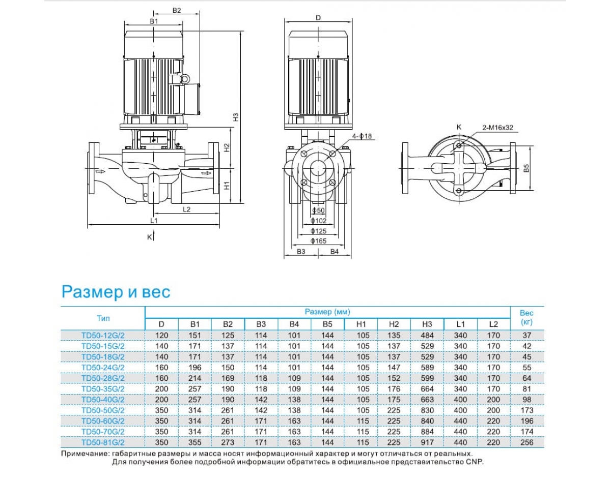 CNP серии TD это вертикальные одноступенчатые насосы типа ин-лайн центробежные, с сухим ротором, нормальным всасыванием, с патрубками в одну линию.