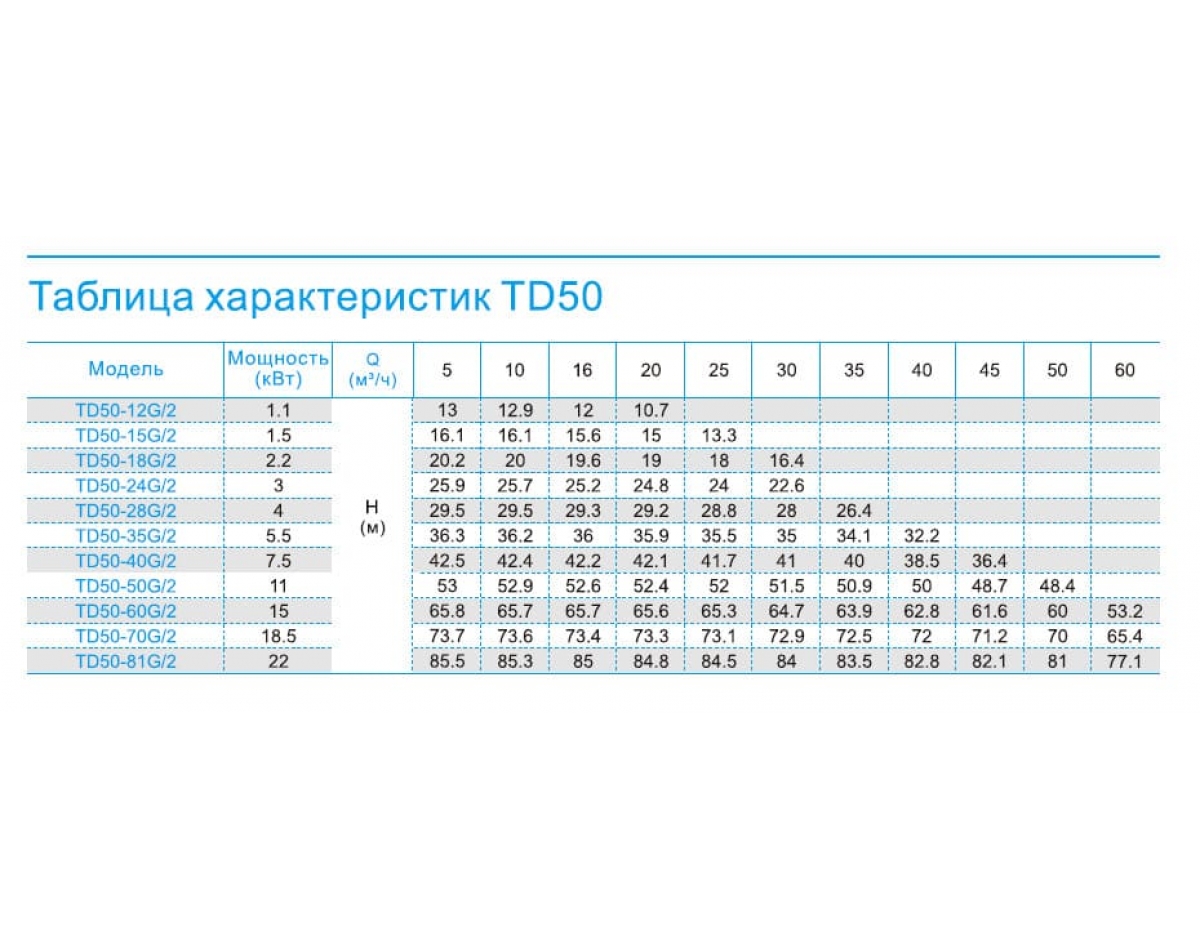 Каталог технических характеристик насосов TD |