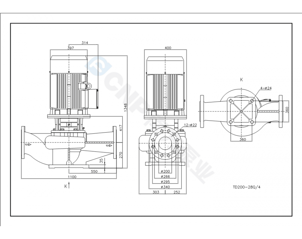 Циркуляционный насос CNP TD-E200-28Q/4 с частотным регулированием