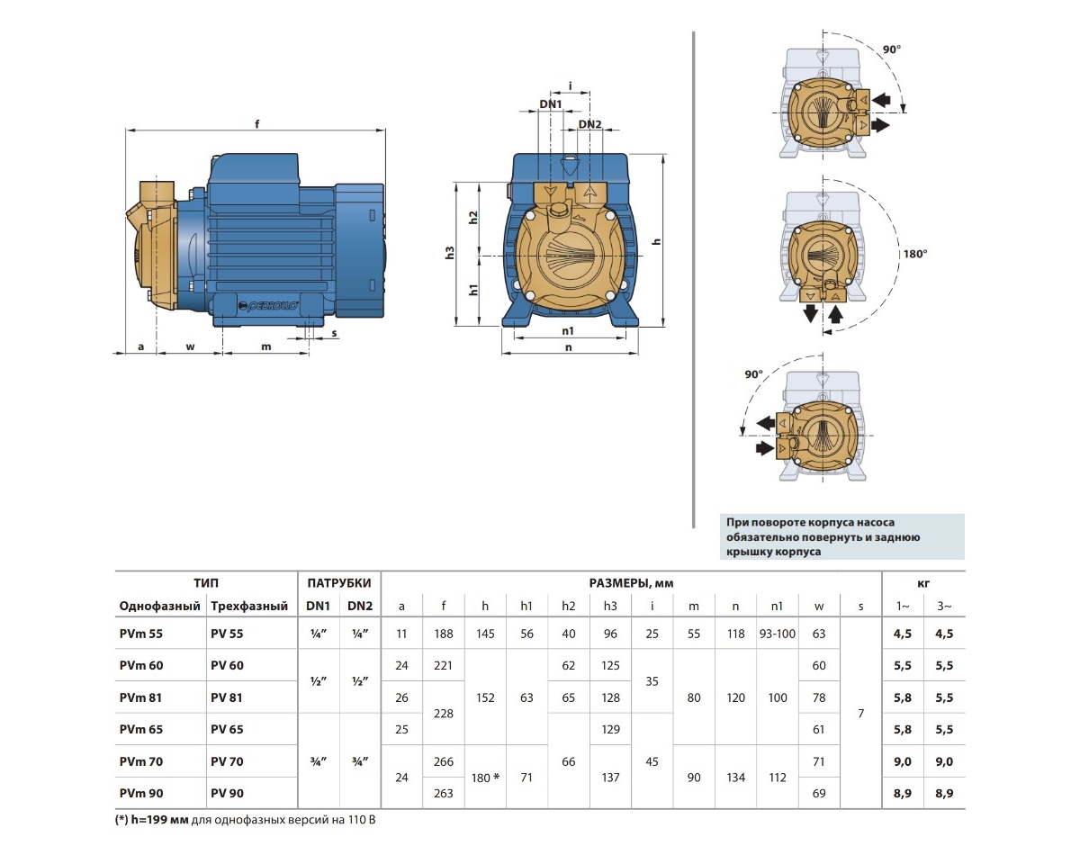 Насос серии PV екомендуются для перекачивания чистой, без абразивных частиц, воды и жидкостей, химически неагрессивных по отношению к конструкционным материалам насоса.