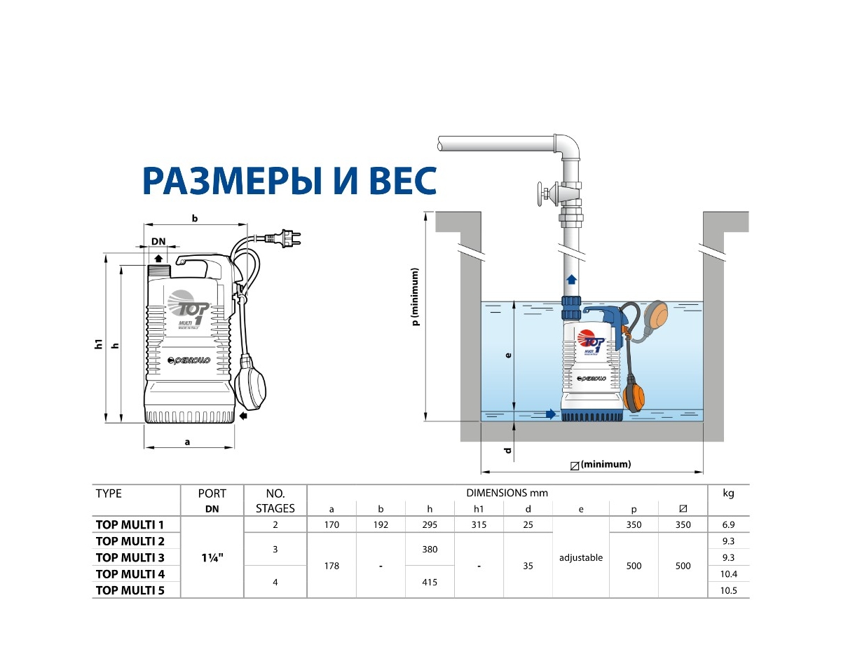• Глубина погружения для TOP MULTI 2-3-4-5 -- 10 м